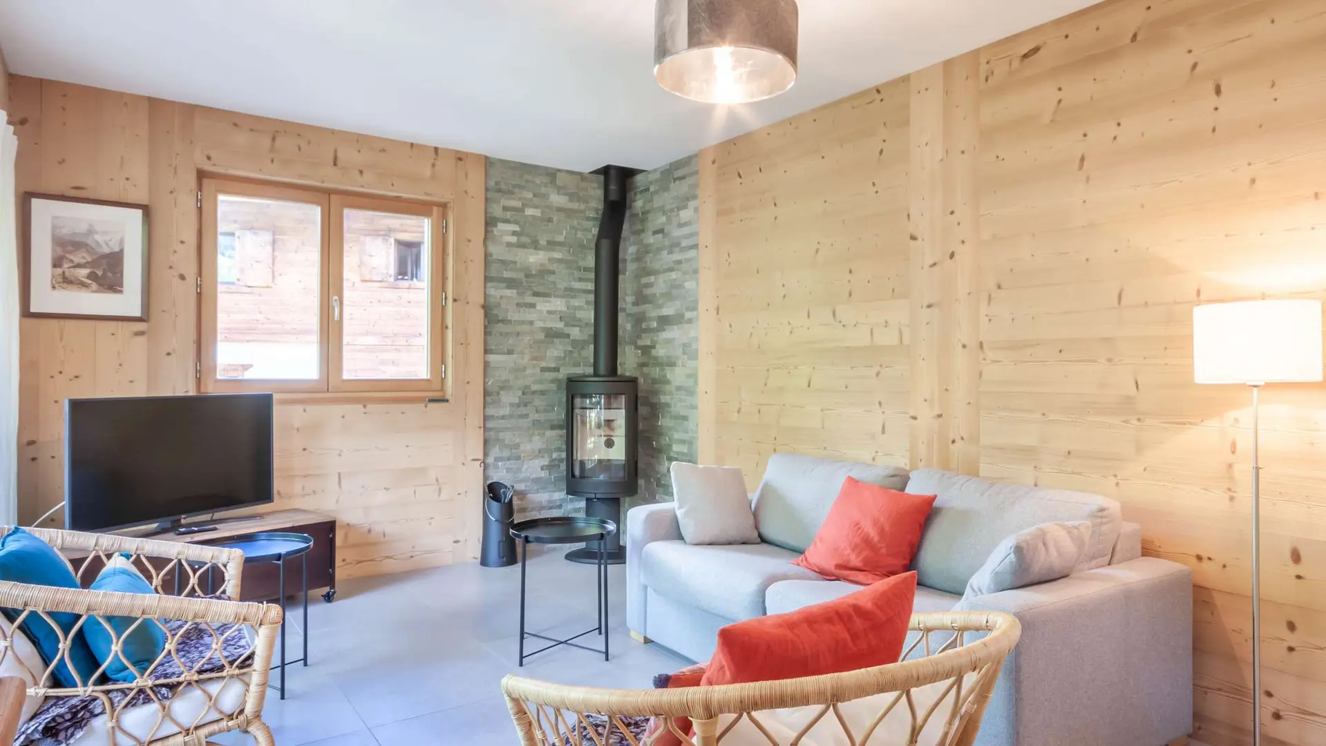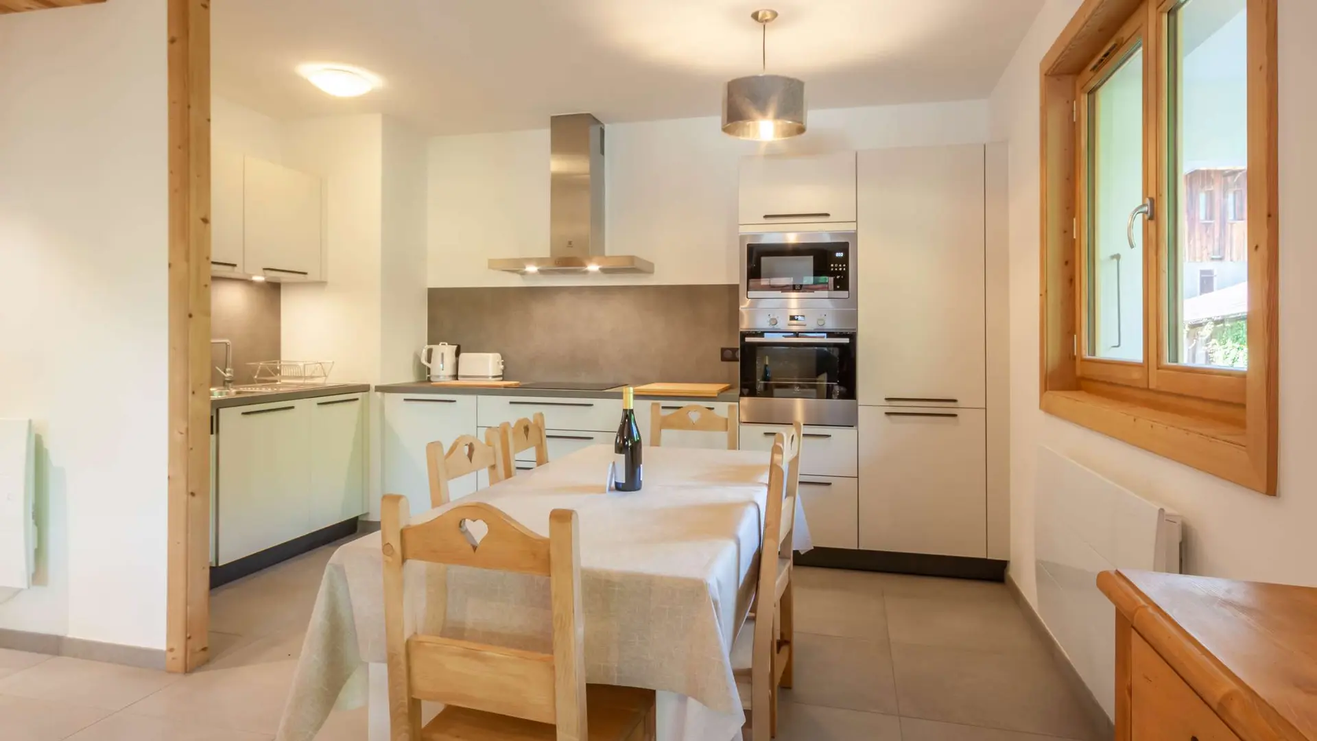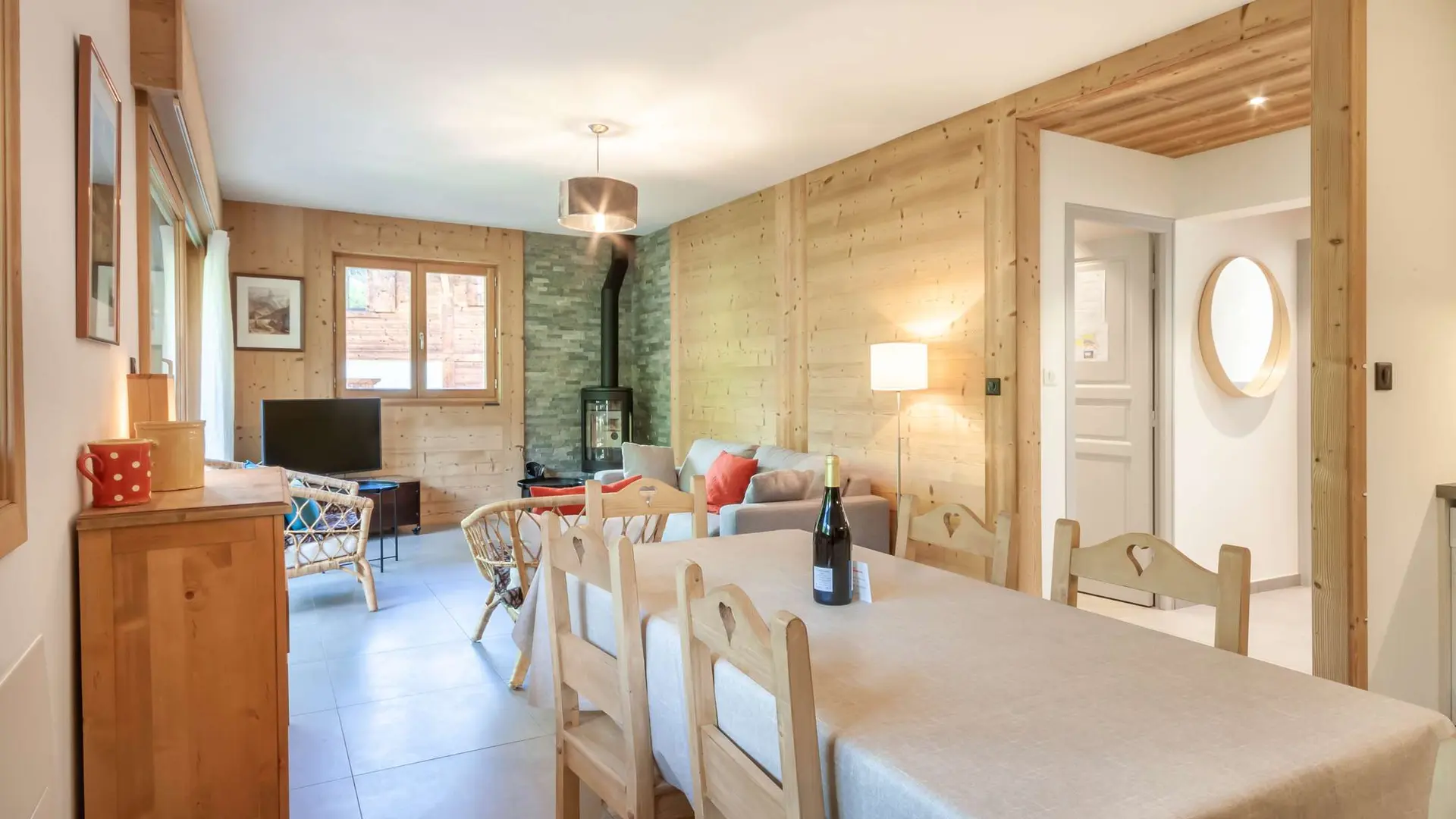 Il est au 1er étage d'un chalet à 150 mètres des pistes et à 450 mètres de la télécabine du Pleney.Il est composé de:- entrée avec rangement- salle de bains avec douche à l'italienne- WC indépendant- pièce à vivre avec coin salon: canapé-lit pour deux personnes, coin TV, poêle à bois, accès à la terrasse exposée sud- coin repas et cuisine ouverte entièrement équipée- chambre 1: deux lits simples, rangements, accès terrasse- chambre 2: un lit double, télévision, rangement, accès terrasseEquipements: lave-vaisselle, lave-linge, four, micro-ondes, WIFI, casier à skis (pas de local vélo)Draps et serviettes fournis en kitsMénage de fin de séjour inclusTaxe de séjour à régler à l'arrivéePartenaire Multipass étéAnimaux non admis